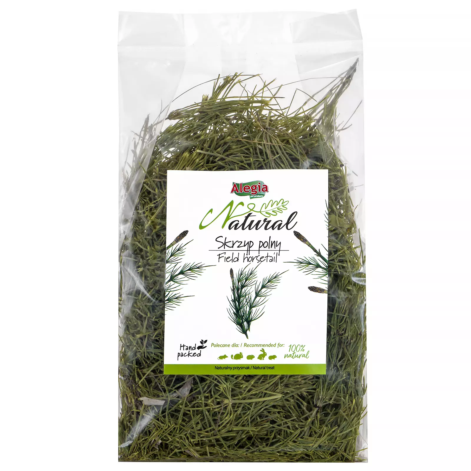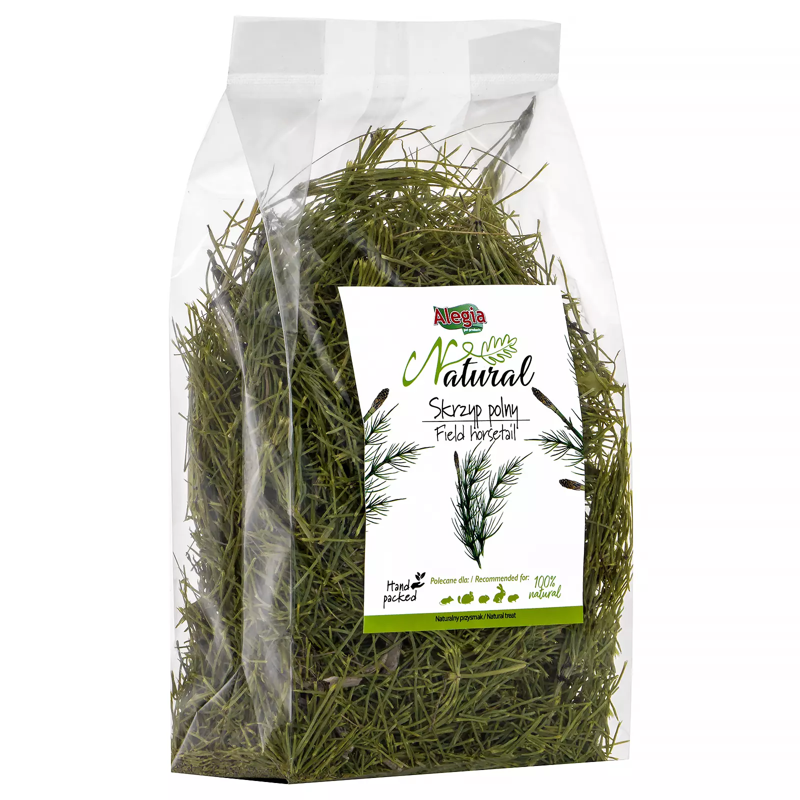 Skrzyp Polny marki Alegia to w pełni naturalny, ręcznie pakowany dodatek do codziennej diety królików i gryzoni. To wyjątkowe zioło znane jest ze swoich właściwości regeneracyjnych, wspierających zdrowie układu pokarmowego i moczowego, a także poprawiających kondycję skóry i sierści.
