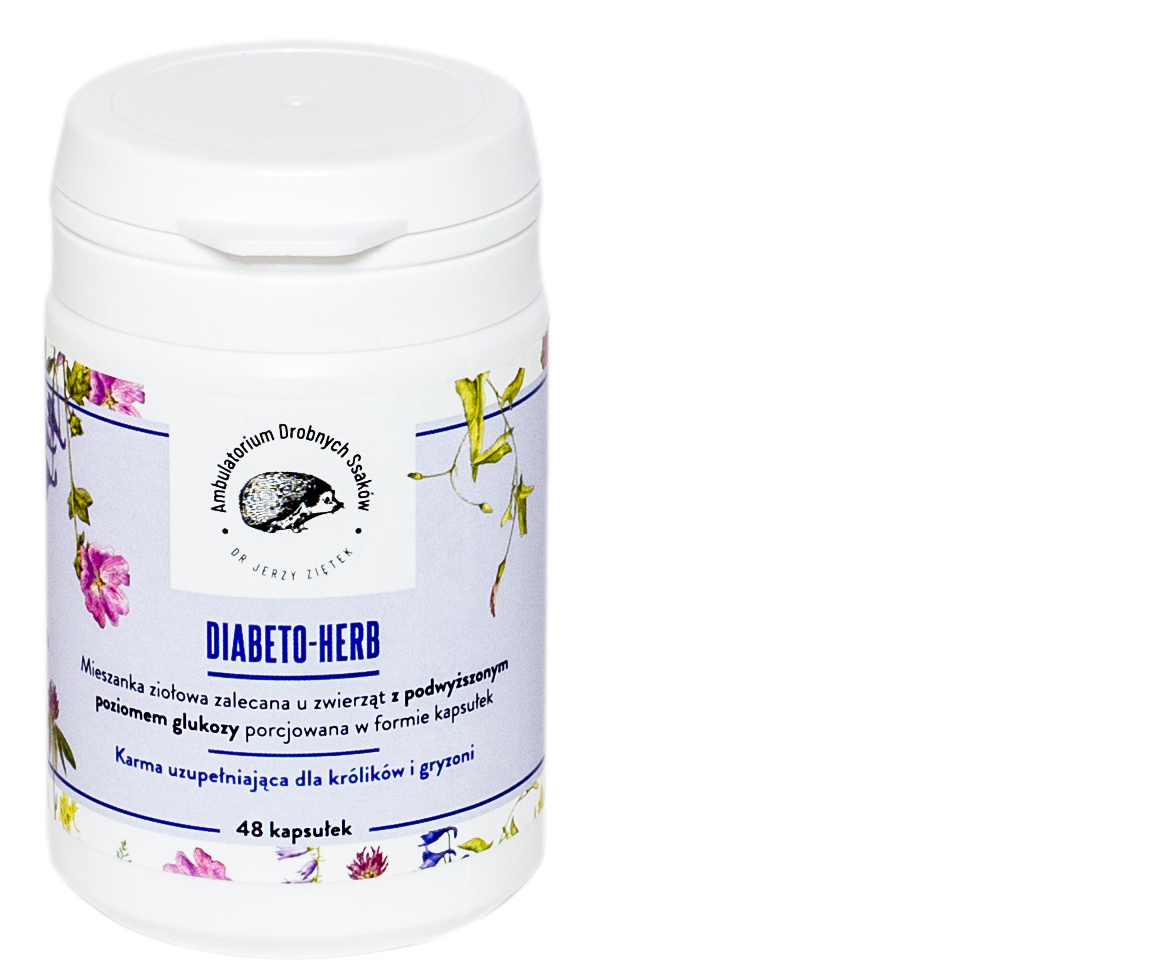 Diabeto-herb zalecany u zwierząt z cukrzycą. Specjalnie dobrany skład ziół wykorzystywanych w preparatach przeciwcukrzycowych został opracowany z myślą o działaniu obniżającym poziom glukozy w surowicy.