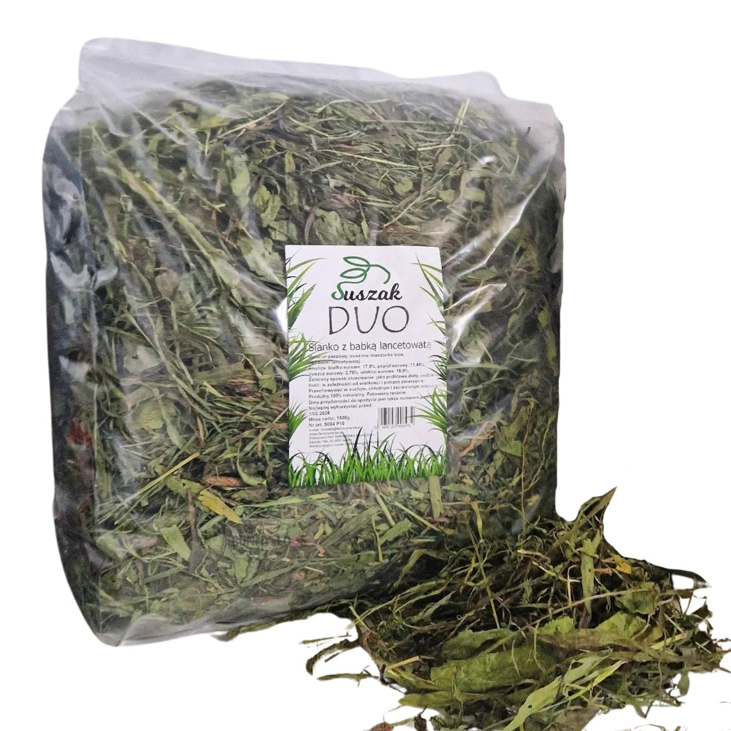 Sianko DUO pochodzi z lubelskich pól suszone jest w suszarni i ma piękny zielony kolor oraz przepiękny zapach,a aromatyczna babka lancetowata dodatkowo zachęci Twojego futrzaka do zajadania się.