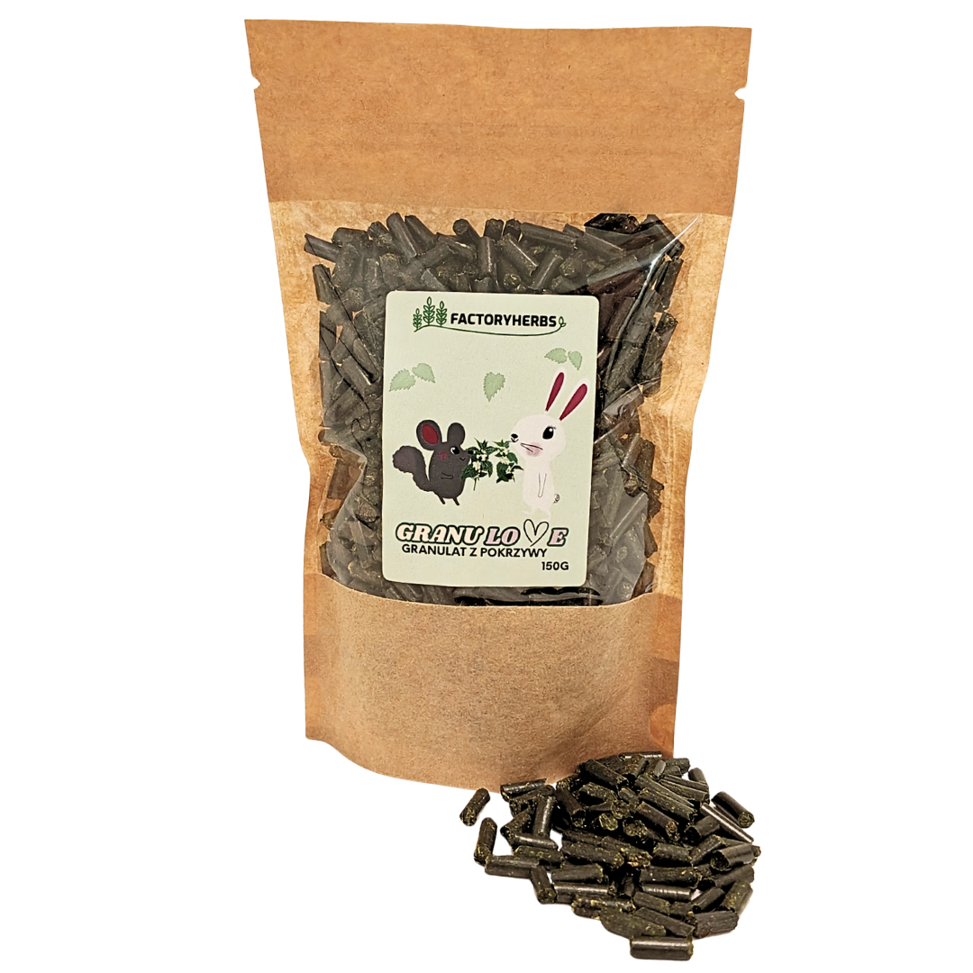Granulat z ziela pokrzywy powstaje z naturalnie suszonego i sprasowanego ziela pokrzywy zwyczajnej. To w pełni naturalny dodatek do diety królików i gryzoni, który dostarcza cennych witamin, minerałów oraz substancji wspierających zdrowie.