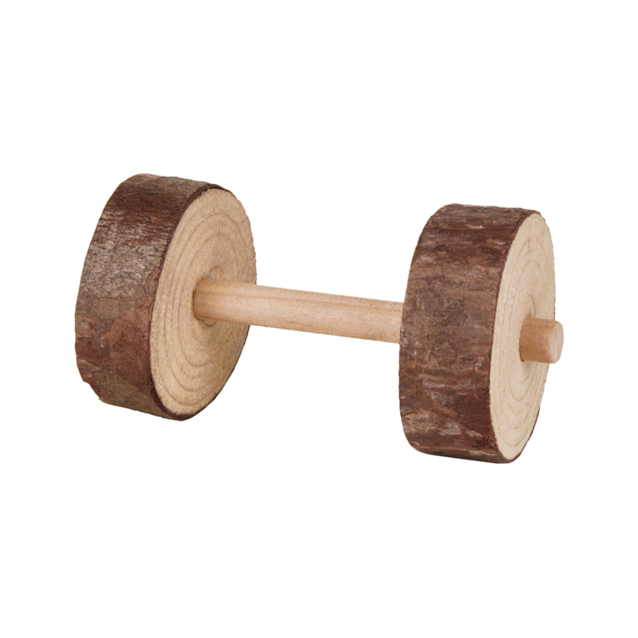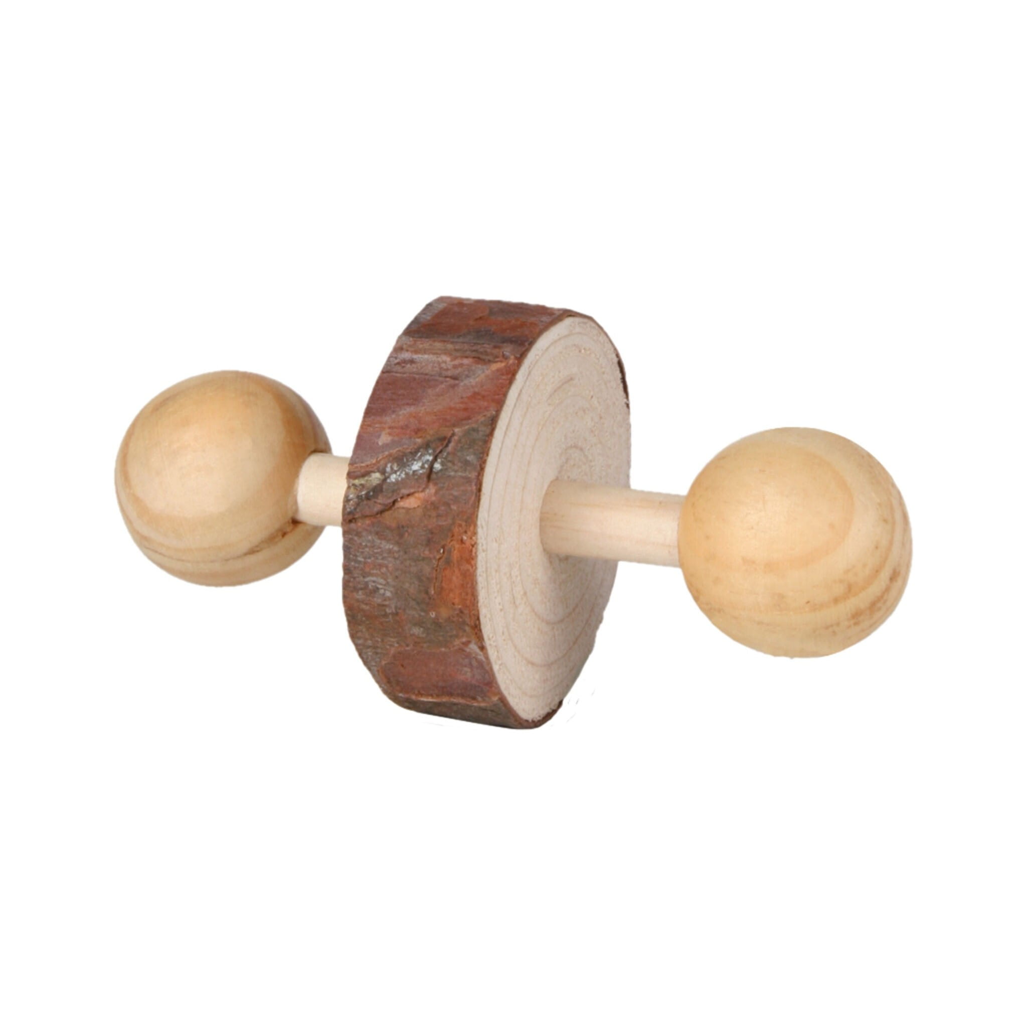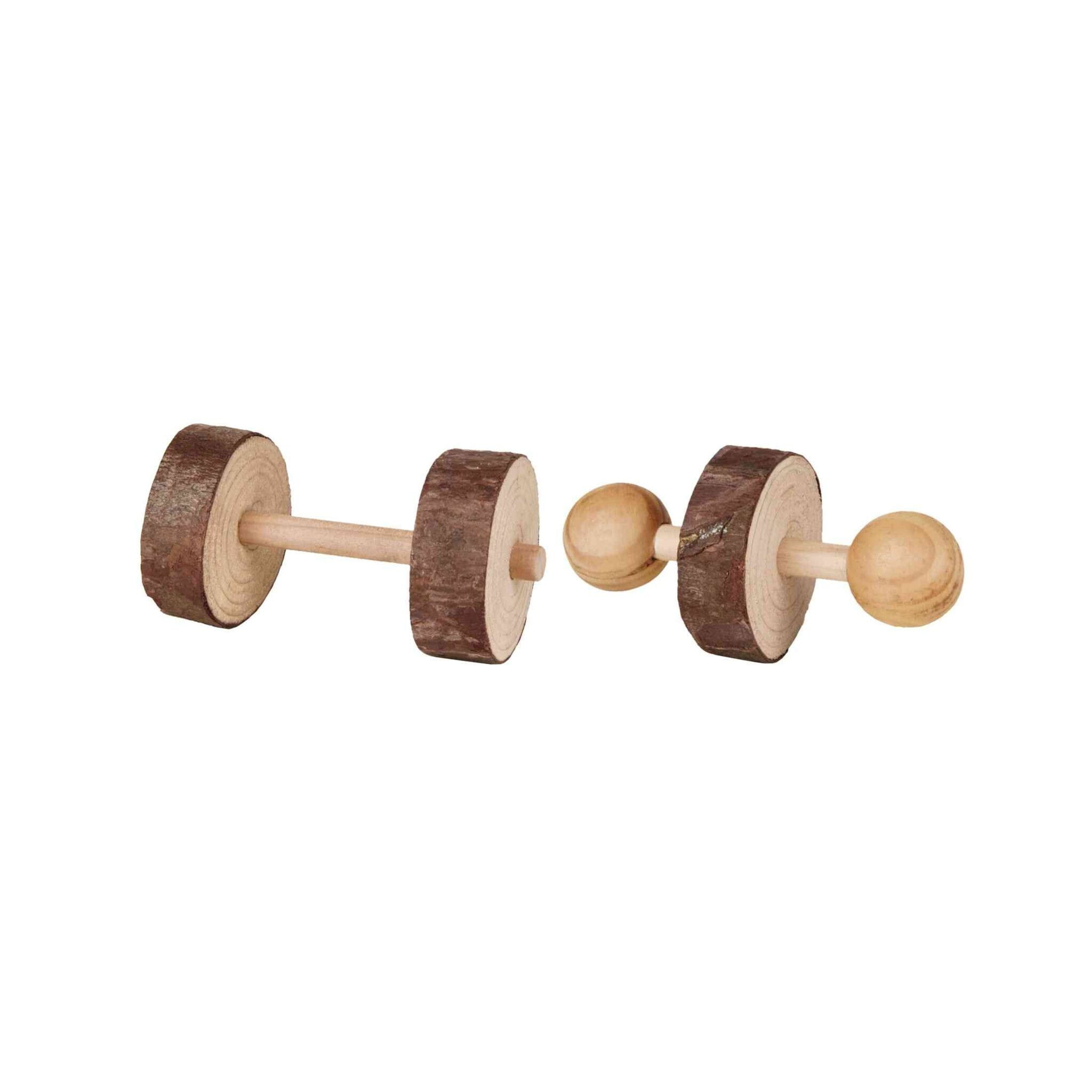 Produkt wykonany w 100% z naturalnych materiałów, zawiera 2 różne rodzaje ciężarków wykonanych z kory. Przywiązujemy dużą wagę do zdrowia Państwa pupila, dlatego stosowany klej jest nietoksyczny i składa się z mieszanki gumy lub celulozy. Zestaw jest idealny dla malych zwierząt do gryzienia.