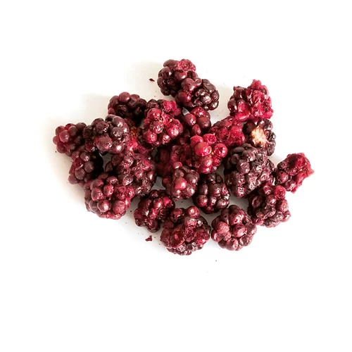 Jeżyna liofilizowana. Bez cukru, bez konserwantów, bez sztucznych barwników. Naturalny smak, aromat i kolor.