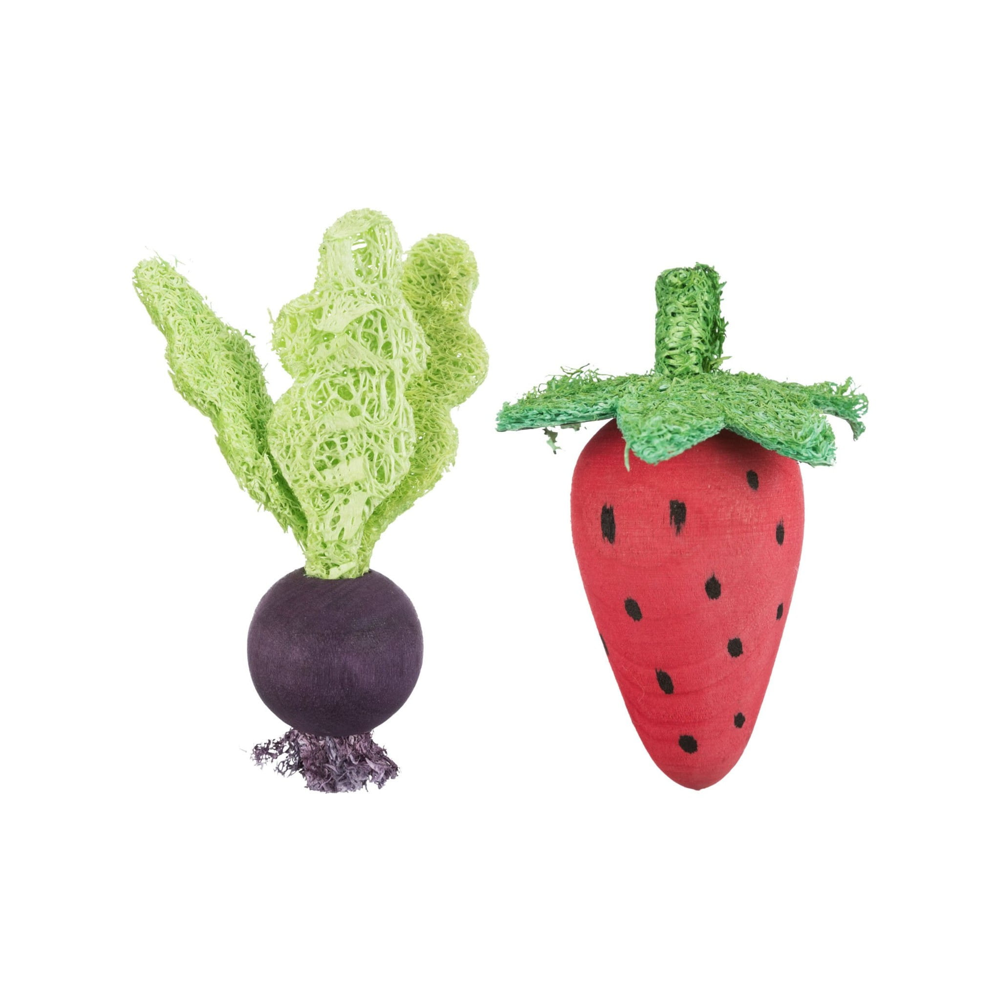 Zestaw zabawek - truskawka i burak, dla królika/gryzoni, drewno/tykwa, 6/9 cm