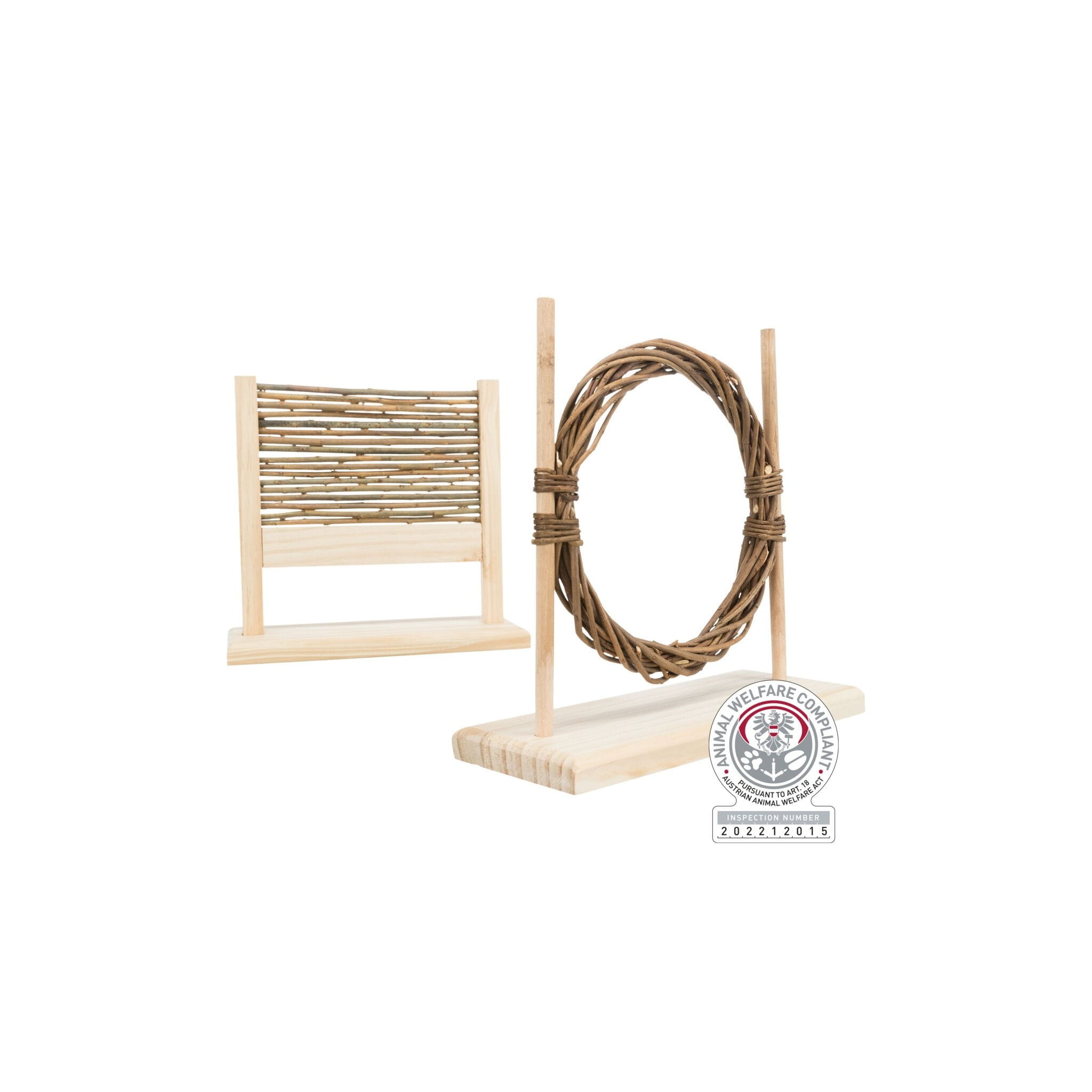Zestaw zręcznościowy skonstruowany z myślą o krolikach i gryzoniach, stanowi idealną zabawkę wspomagającą ich rozwój. Składa się z przeszkód o regulowanej wysokości, które pozwalają na łatwe rozpoczęcie treningu. Zabawka nie tylko pobudza aktywność, ale także rozwija umysł zwierzęcia. Wykonana z drewna nieobrobionego i wierzby, zachęca do aktywności fizycznej oraz mentalnej. Wymiary pierścienia wynoszą 28 × 26 × 11 cm, z wewnętrznym pierścieniem o średnicy 16,5 cm, natomiast płotek ma wymiary 28 × 26 × 11 cm (min. wysokość skoku 12 cm). Zestaw zawiera instrukcje szkoleniowe i jest zgodny z ustawą o ochronie zwierząt - §18 (AT).