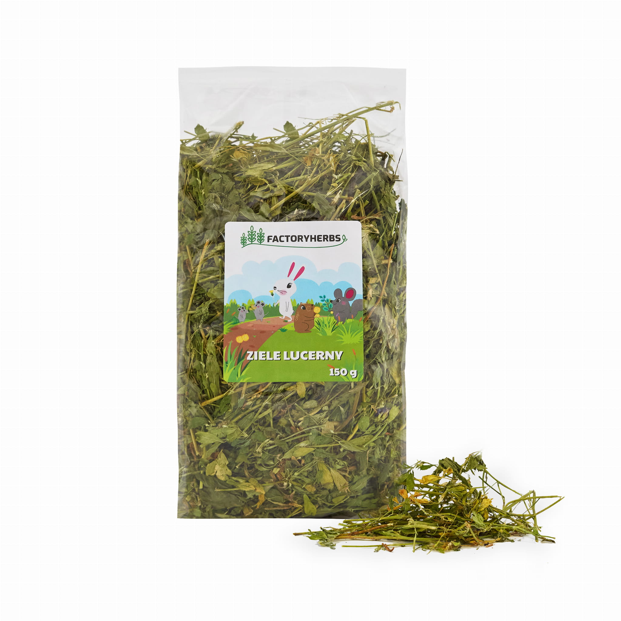 Materiał paszowy : suszone ziele lucerny Analiza: popiół surowy 10,72%, włókno surowe 25,5%.